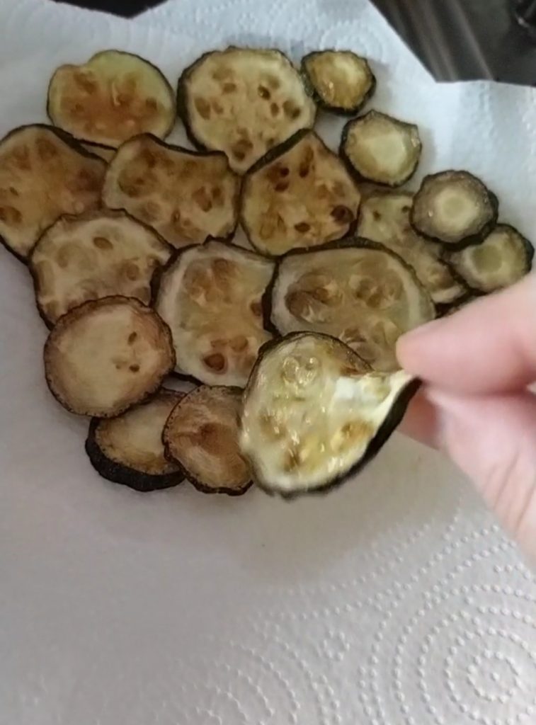 Una vez fritos todos los calabacines, sécalos con papel de cocina para eliminar el exceso de aceite.