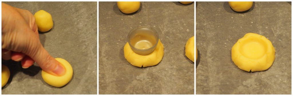 • Haced un hueco con el pulgar o con un tapón redondo presionando en el centro y formando un agujero donde pondréis la mermelada.