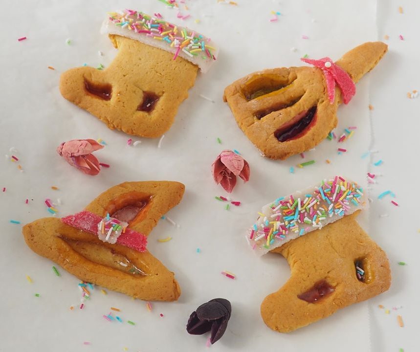 Me encantan las galletas de vidrio, me gusta mucho el efecto transparente, pero también el sabor particular que les dan tanto los caramelos de fruta como los ositos de goma que se utilizan para rellenarlos. Quise intentar recrear esta idea preparando estas Galletas transparentes de la Befana, que he completado con fondant de malvaviscos.