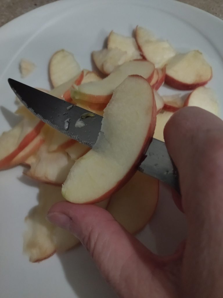 Corta las manzanas en rebanadas no demasiado finas.