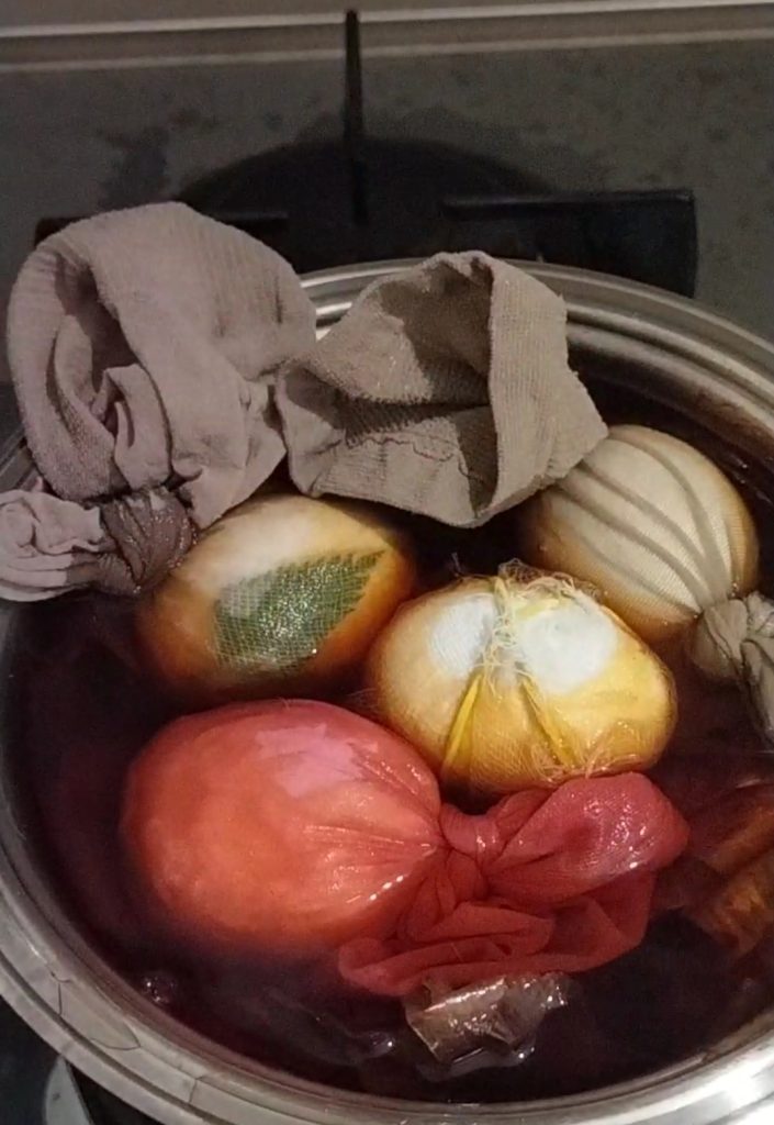 Hervir las cáscaras de cebolla durante unos 10 minutos en agua.