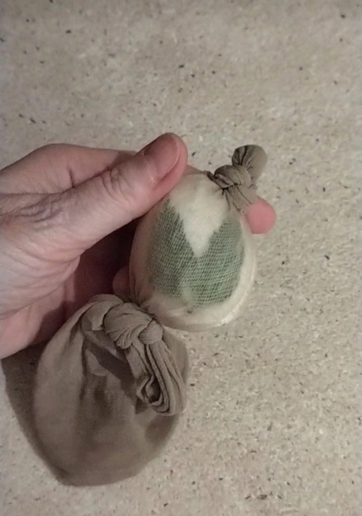 Utiliza una gasa más gruesa, puedes incluso evitar poner los huevos en la media de nylon.