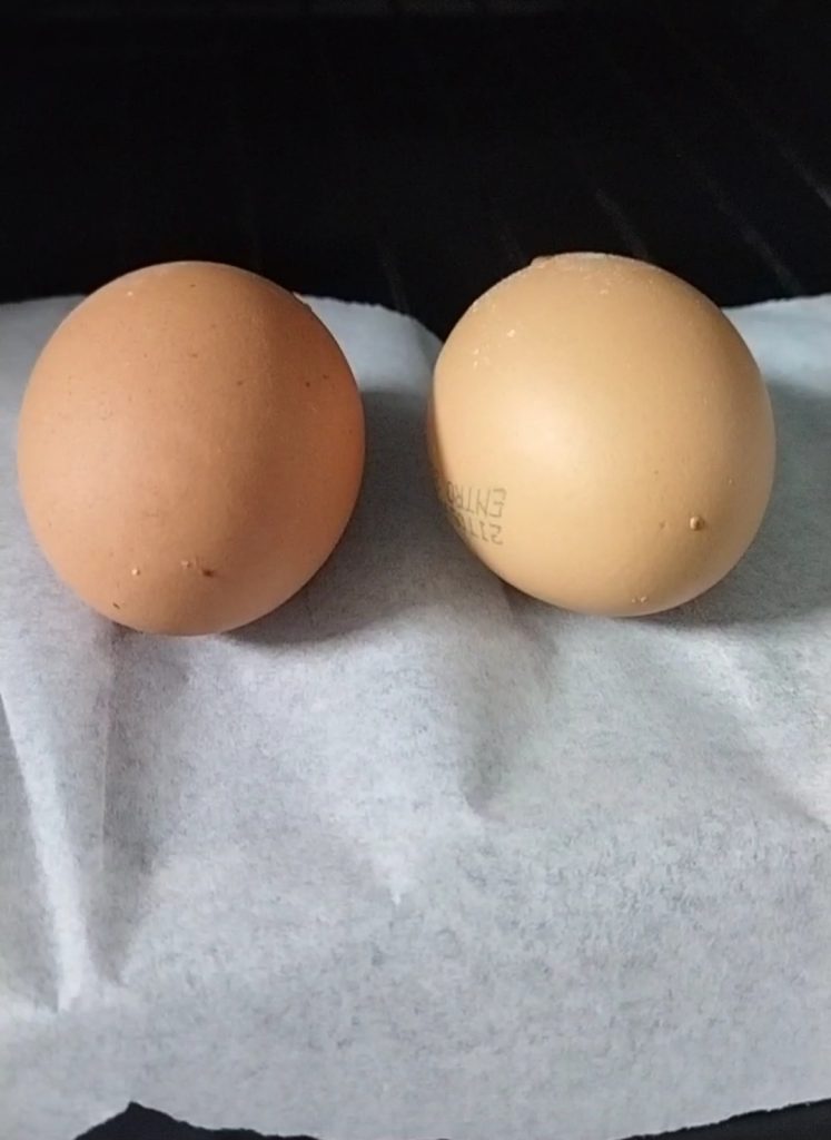 Os recomiendo comprar huevos de categoría XL, ya que tienen una cáscara más grande. Guarda las cáscaras cada vez que hagas una preparación con huevos. Pero ten cuidado de cómo las abres, necesitas que queden enteras para poder cocer los muffins en su interior. Golpea suavemente la punta de la cáscara con una herramienta puntiaguda (un cuchillo, un corta quesos, las púas de un tenedor, un palillo) para hacer un pequeño agujero.