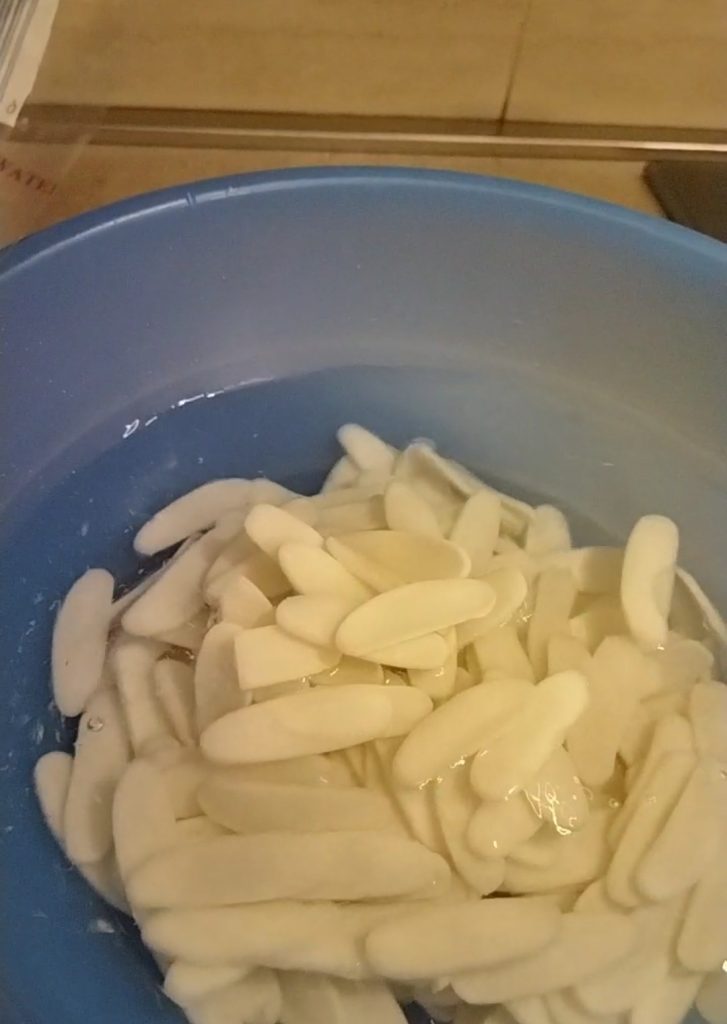 Lo primero que debéis hacer es poner en remojo los ñoquis al menos durante 24 horas, o el tiempo indicado en el paquete. Os aconsejo cambiar el agua cada 12 horas.