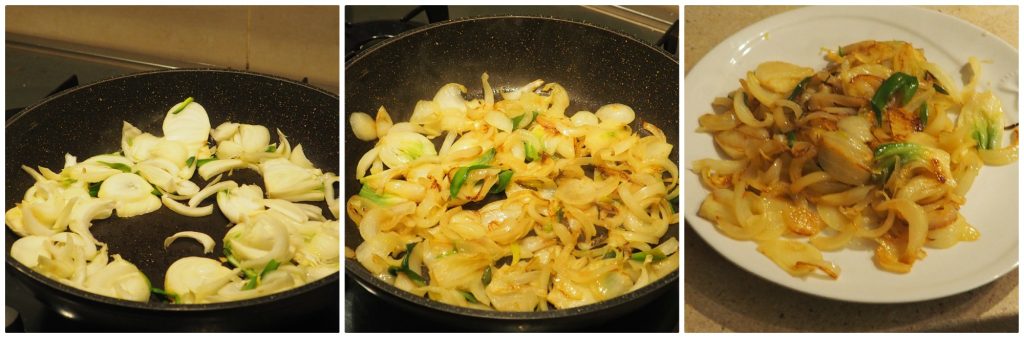 O puedes dorar primero la carne y luego añadir las cebollas y cocinarlos juntos, como en el reel.