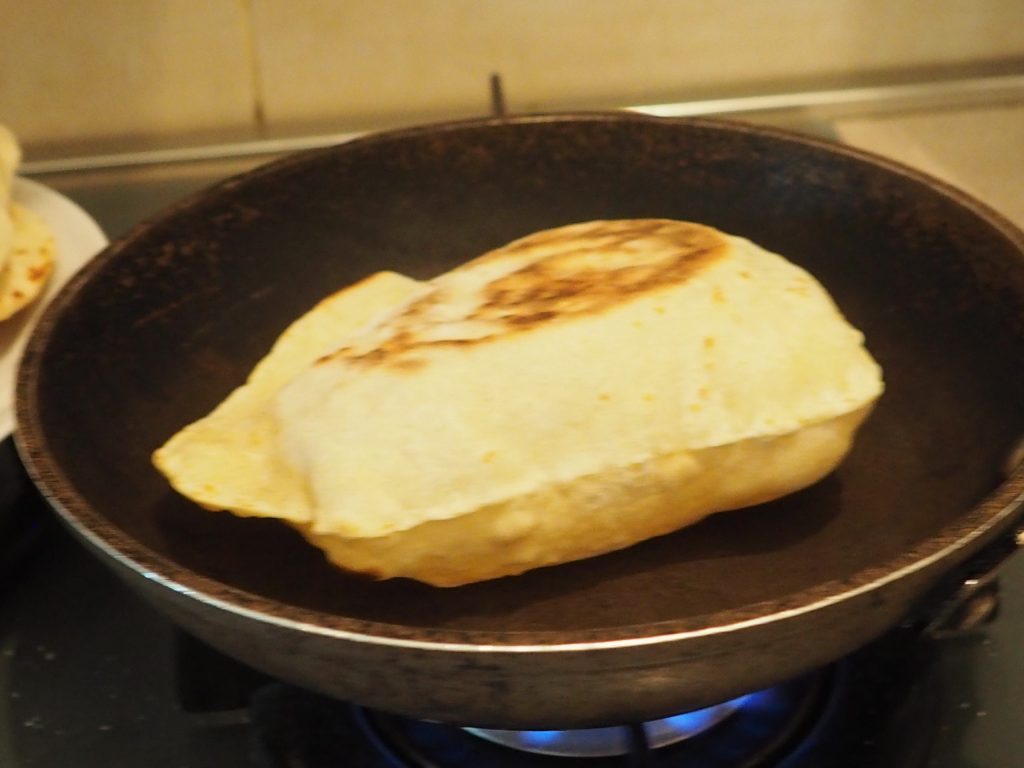 Por favor, una vez que pongas la masa en la sartén, déjala por uno o dos segundos, antes de que se formen las burbujas debes darle la vuelta, puedes también omitir poner la tapa la primera vez. Luego cúbrela y cocina por muy pocos minutos. Dale la vuelta también varias veces, hasta que esté cocida.