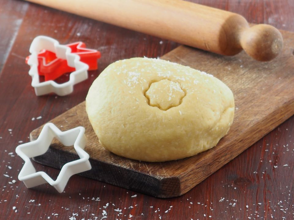 • Pongan sobre una superficie la harina en forma de montañita, hagan un agujero en el centro, añadan los huevos, el azúcar, la mantequilla fría de la nevera, el coco rallado y comiencen a amasar, sin trabajar demasiado los ingredientes, hasta que la masa esté suave y ya no pegajosa. Si es necesario, añadan un poco más de harina.