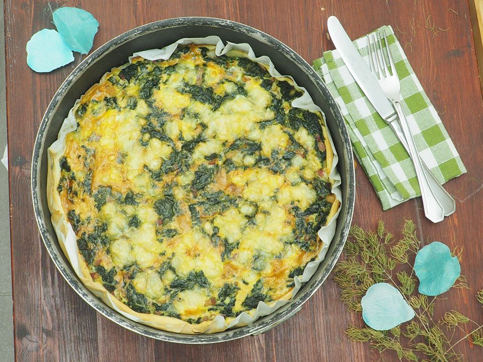 Tarta salada con espinacas y pasta de salchicha