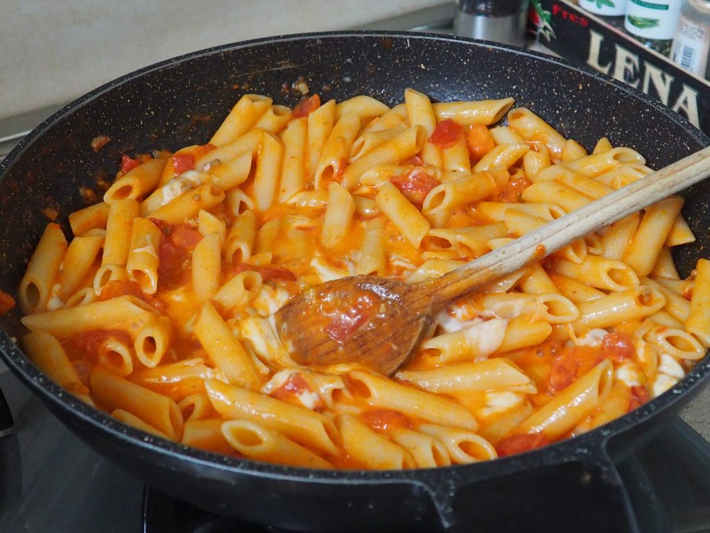 Las Penne fundentes con tomate y mozzarella (sabor pizza) son un plato muy rápido de preparar, ideal cuando no se tiene mucho tiempo para cocinar y se necesita usar los ingredientes que usualmente tenemos en casa. La adición de orégano le da un delicioso sabor que recuerda a la pizza.