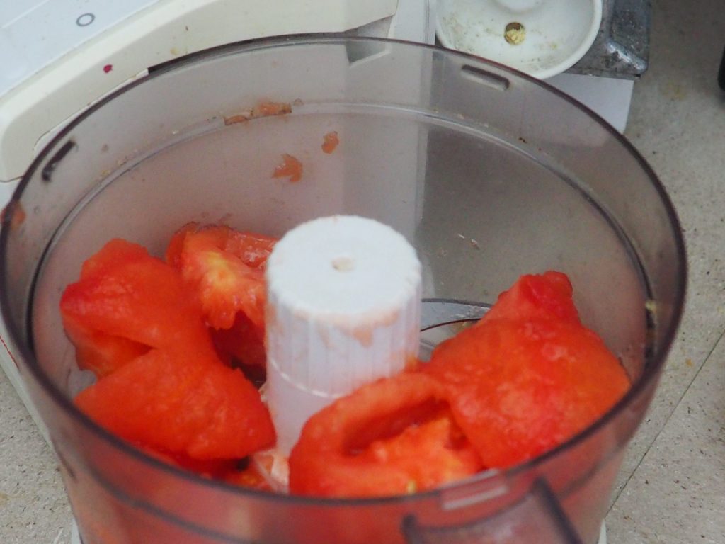 • Córtalos en rodajas, quítales el corazón y las semillas. Ponlos en un procesador de alimentos.
