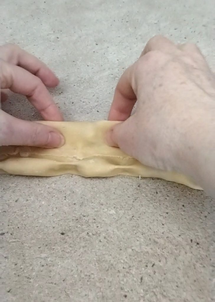 Doblad los bordes hacia el interior, presionad bien la parte central para que no se abra la masa.
