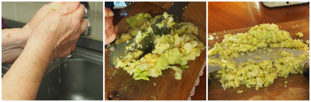 Ahora escurre bien la col del agua en exceso y pícala con una mezzaluna.