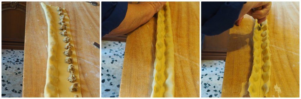 Esta operación es importante para sellar los raviolis y sirve para sacar todo el aire que queda dentro.