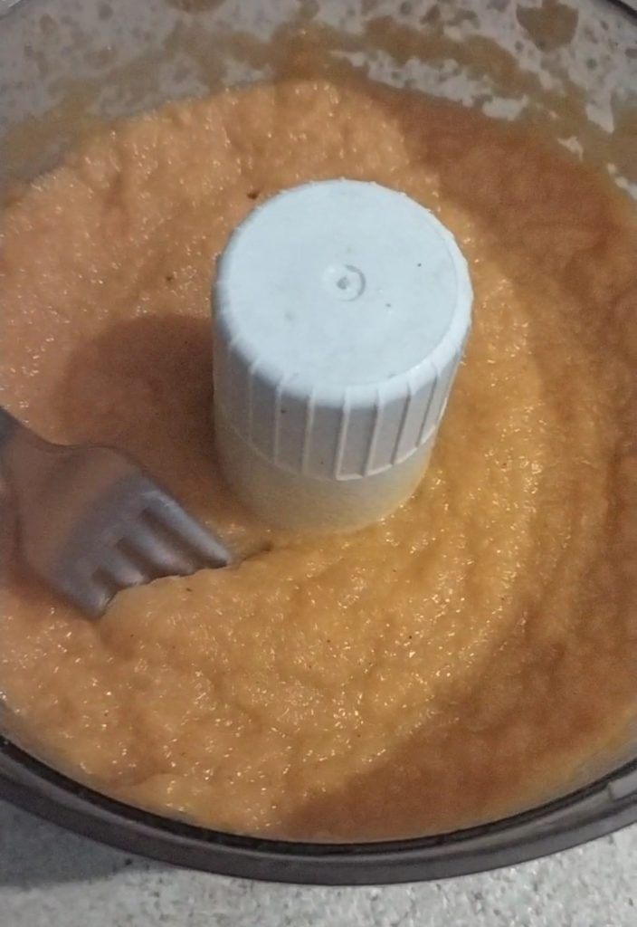Cuando las zanahorias estén cocidas, ponlas en una batidora con algunas cucharadas de caldo y tritúralas bien.