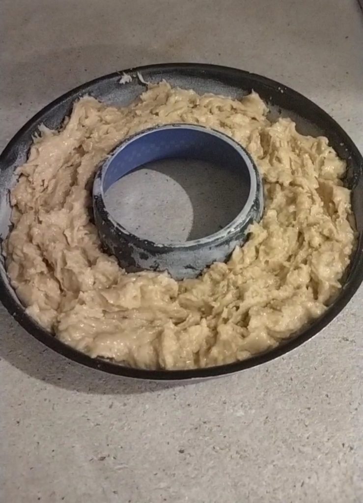 Vierte la mezcla en un molde para roscas de 25 cm de diámetro, hornea a 180° durante unos 30-35 minutos. Haz siempre la prueba del palillo, si sale seco, la rosca estará bien cocida. En horno a 180° durante 35-40 minutos, molde para roscas de diámetro 25 cm