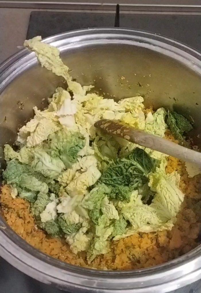 • Añadid el col en la olla con el picado de verduras.