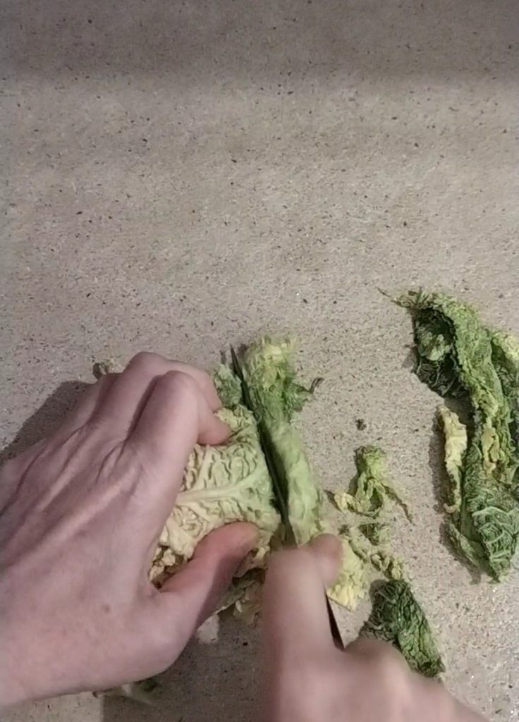 • Lavad y cortad el col en tiras finas.