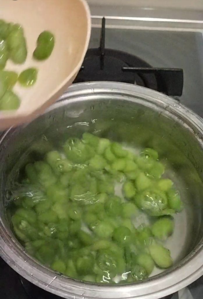 • Con una ligera presión, sacad las habas de su piel.
