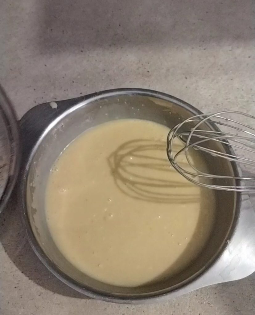 Mezcla los ingredientes, añade la leche y el extracto de vainilla y con un batidor manual integra bien todo.