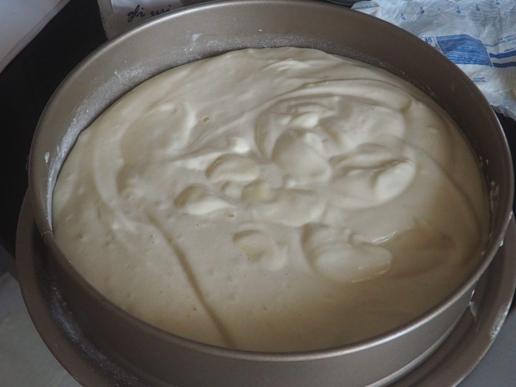 • Engrasa y enharina un molde del diámetro de 25 cm (yo he usado un molde desmontable), vierte la mezcla en su interior, teniendo cuidado de no golpearlo, para no sacar el aire. Hornea a 160-170° durante unos 45/50 minutos. Haz siempre la prueba del palillo.