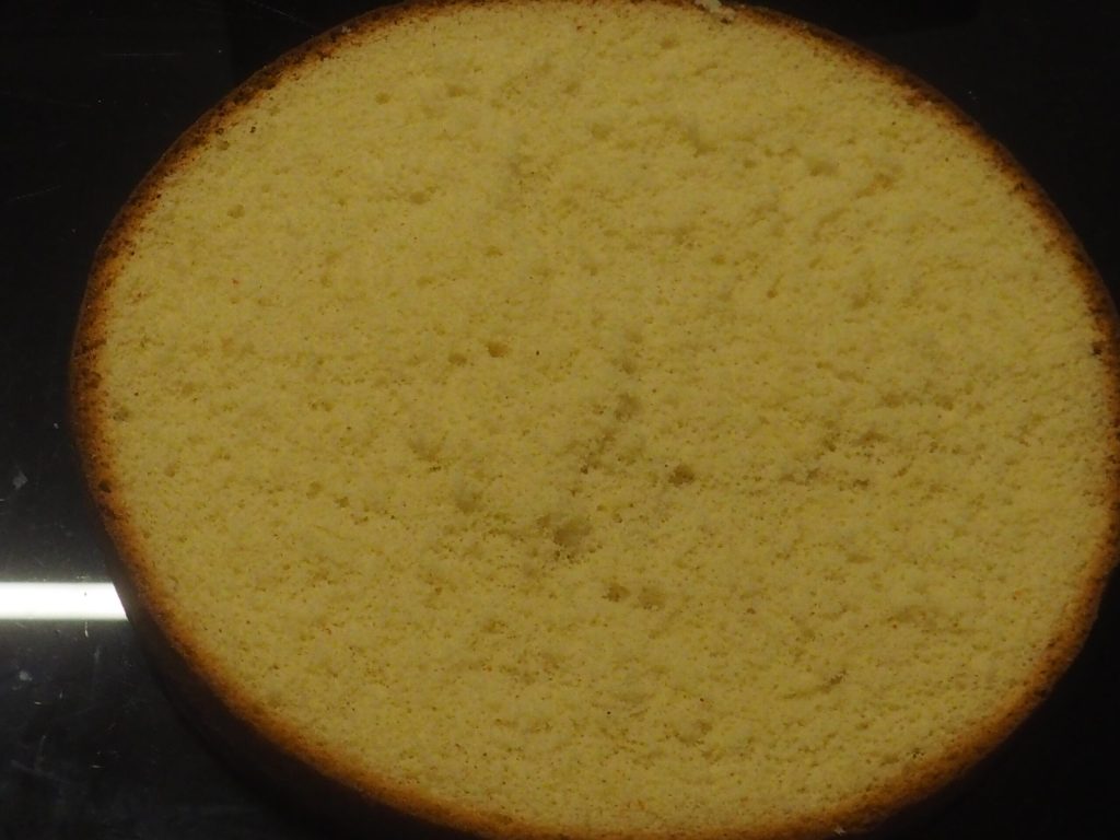 • Coloca el segundo disco de bizcocho en un plato y empapa tanto la parte superior como la inferior con el almíbar restante. Con esto cierra la tarta con la última capa. Pon en la nevera al menos por una noche.