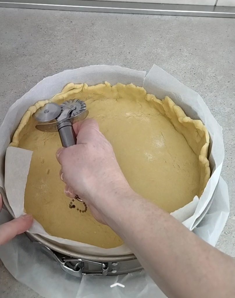 Cubridlo con la masa quebrada, nivelad el borde para que todo tenga la misma altura.