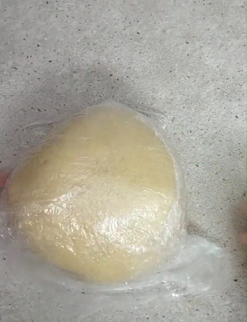 Para mayor comodidad, os dejo el procedimiento. Poned en una superficie la harina en forma de montaña, haced un hueco en el centro, añadid las semillas de la vaina de vainilla, los huevos, el azúcar, la mantequilla ablandada y comenzad a amasar, sin trabajar demasiado los ingredientes, hasta que la masa esté lisa y ya no pegajosa. Envolved el pan en film transparente y dejad reposar en la nevera durante unos treinta minutos.