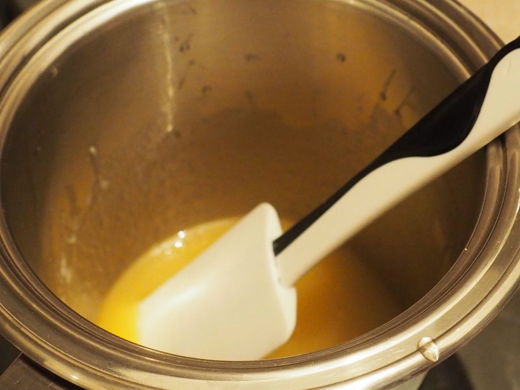 • En este punto, poner la gelatina rehidratada en un cazo y colocarla al fuego, añadir la miel, la mantequilla cortada en trozos y derretir a fuego lento.