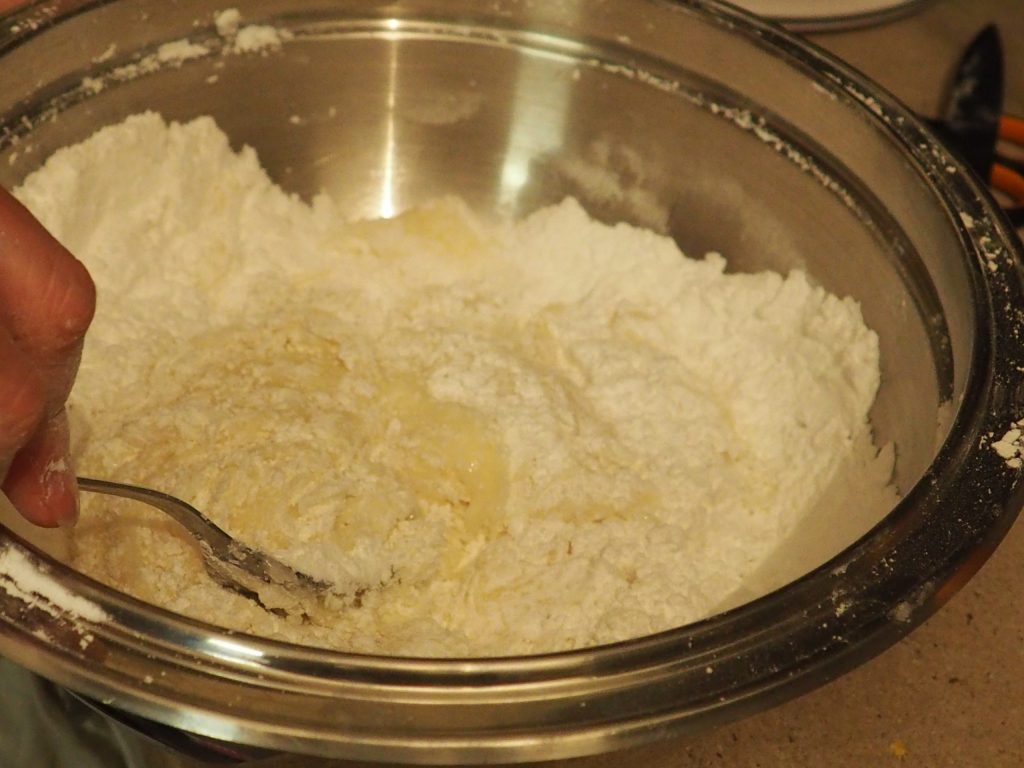 • Verter el líquido caliente en el bol con el azúcar glas, tratando de colocarlo en el centro.