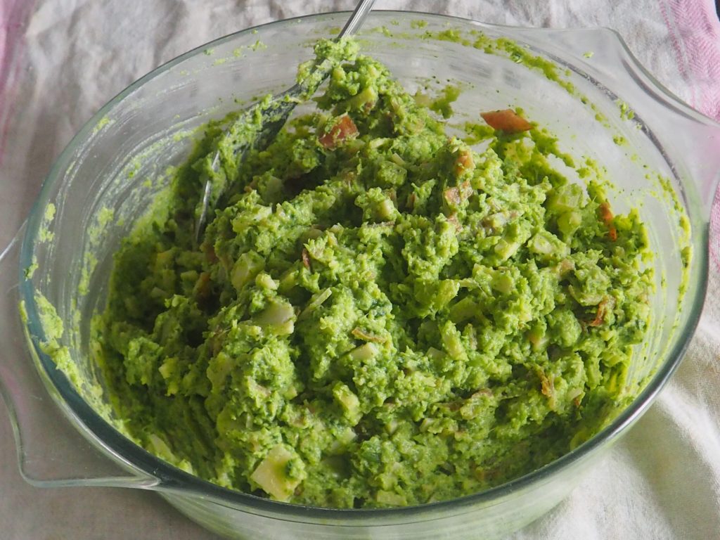 En un bol pon los brócolis, los huevos, el parmesano, la ricotta y mezcla bien. Ajusta de sal si es necesario.