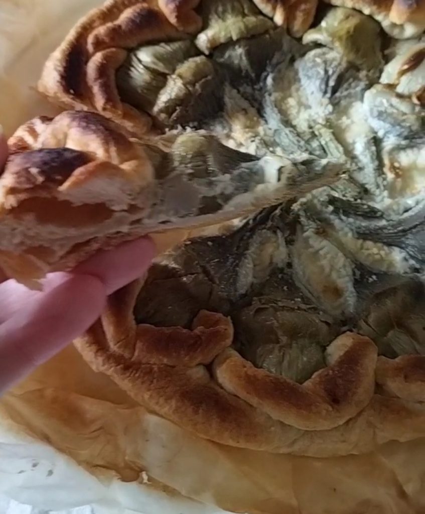 Cuando tienes invitados y no quieres ofrecer los mismos entrantes de siempre, prueba la Tarta salada rápida de alcachofas, facilísima, sabrosa y lista con pocos ingredientes. ¡Con una sorpresa dentro de cada alcachofa!
