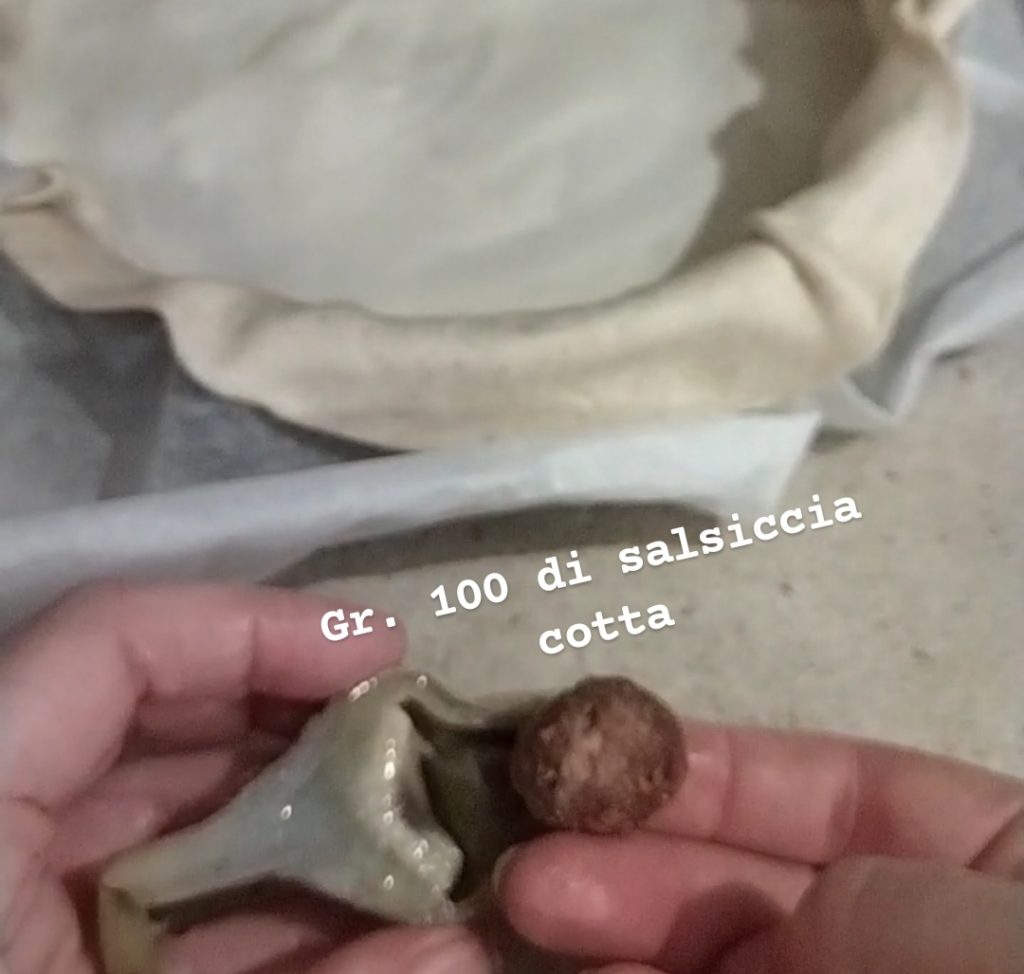 Condimenta las alcachofas con un poco de sal fina y aceite de oliva. Dentro coloca un poco de salchicha previamente dorada en la sartén. Yo usé bolitas de salchicha y puse media bolita en cada mitad de alcachofa.