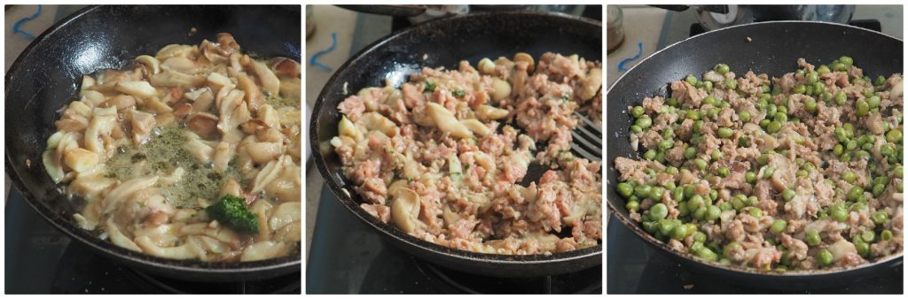 Para un almuerzo sabroso, estos Tortiglioni a la boscaiola, con champiñones, salchicha y guisantes, son realmente una delicia. Puedes utilizar los hongos que prefieras, los champiñones irán genial, de lo contrario, puedes elegir también rebozuelos u otras variedades de tu agrado.