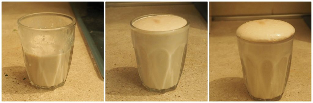 Para preparar el fermento, pon 50 ml de leche en un vaso y caliéntala ligeramente.