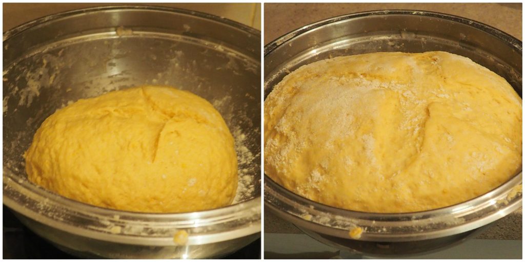 Mezcla todos los ingredientes, añade poco a poco la leche, trabajando bien la masa hasta que esté lisa y ya no pegajosa.