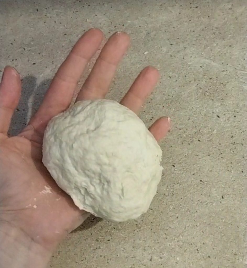 Amasa bien los ingredientes hasta obtener una bola lisa y compacta, que no se pegue. Si tienes tiempo, déjala reposar unos diez minutos envuelta en film transparente o cubierta con un recipiente.