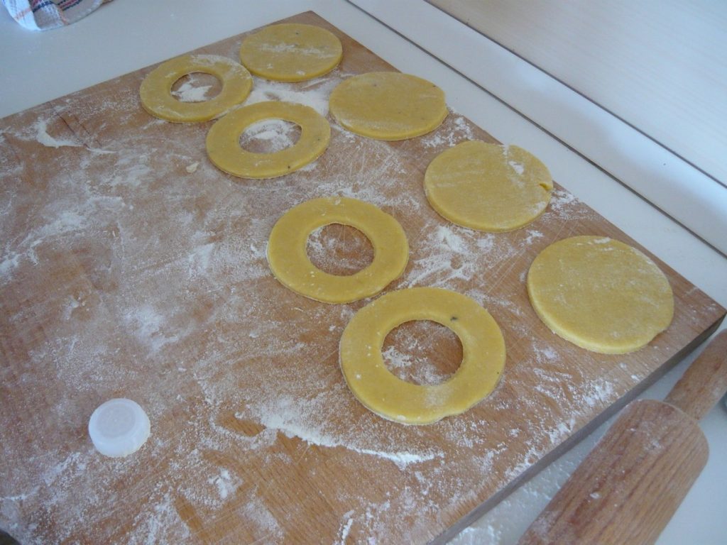 Ojos de buey, un dulce que despierta en mí recuerdos de juventud cuando por la mañana se pasaba por la pastelería antes de ir al colegio para comprar el almuerzo. Me animé a hacerlos después de que me sobrara masa quebrada. De hecho, después de hacer la tarta de mermelada, tenía bastante masa quebrada y en pocos y sencillos pasos hice estas deliciosas galletas con mermelada de ciruelas hecha por nosotros mismos. Así que siguiendo las recetas para la masa quebrada que encontramos AQUÍ continuamos siguiendo estos pasos.