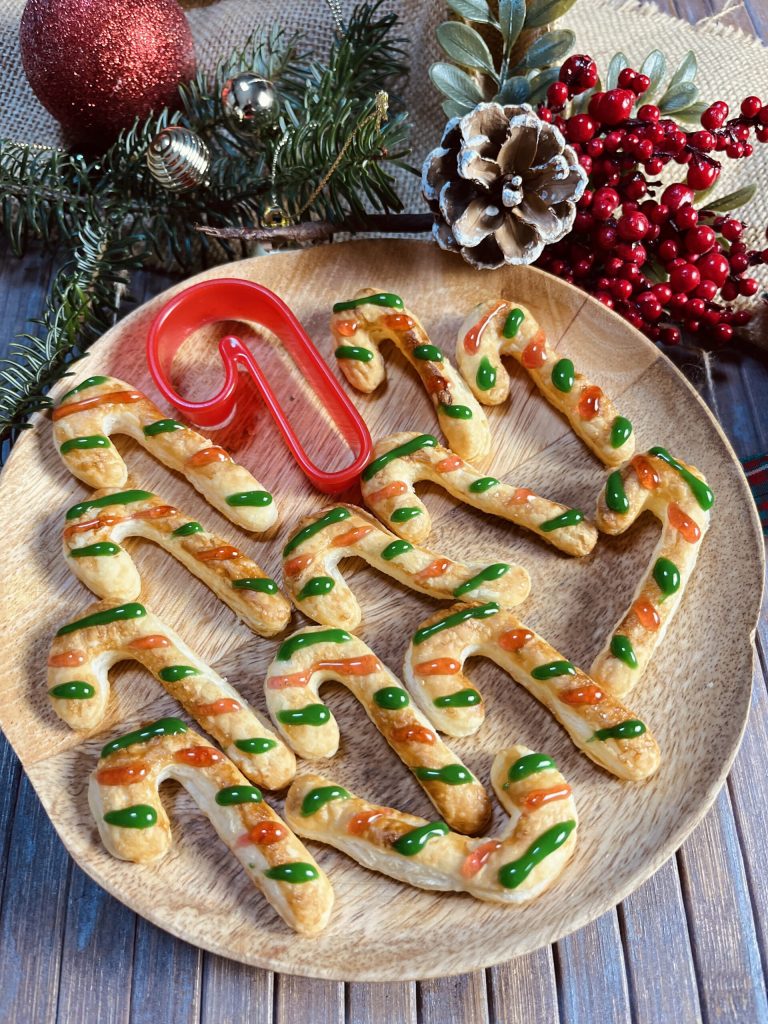 Bastón de caramelo de hojaldre en freidora de aire. Una idea deliciosa, rápida y perfecta para las festividades navideñas.