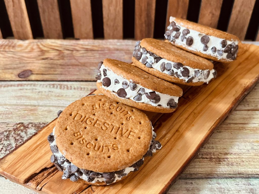 Nuestras Galletas de Helado de Nata con Pepitas de Chocolate están listas.