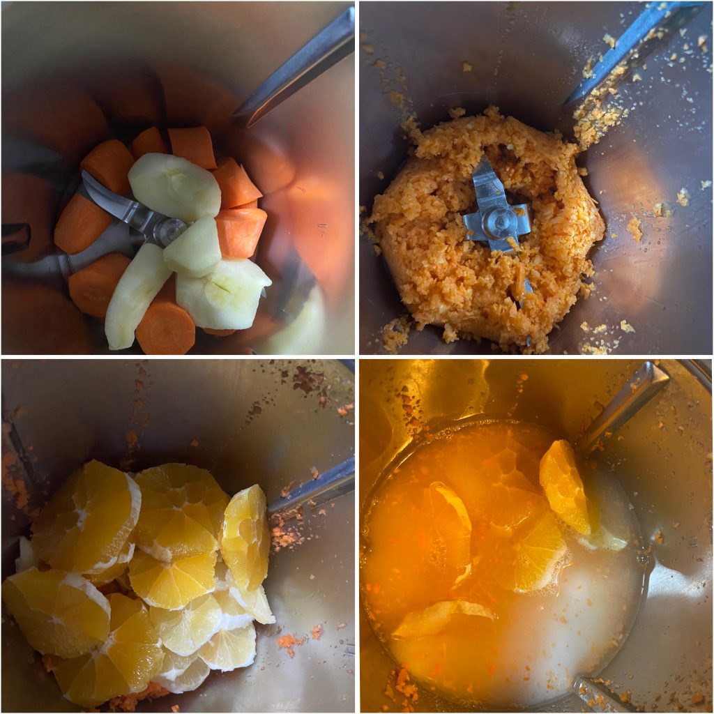 Cortamos los cítricos en rodajas y los ponemos en la Thermomix junto con la mezcla de manzana y zanahorias.