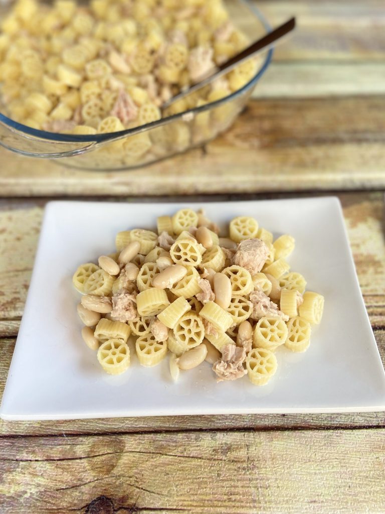 Nuestra pasta fría con atún y alubias está lista para ser disfrutada de inmediato o guardada en el frigorífico para servirla en el almuerzo.