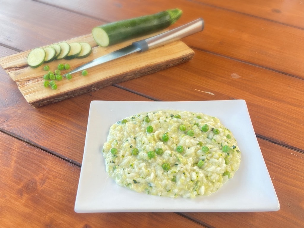 El RISOTTO CON GUISANTES Y CALABACINES es un delicioso primer plato muy cremoso con un sabor particularmente delicado.