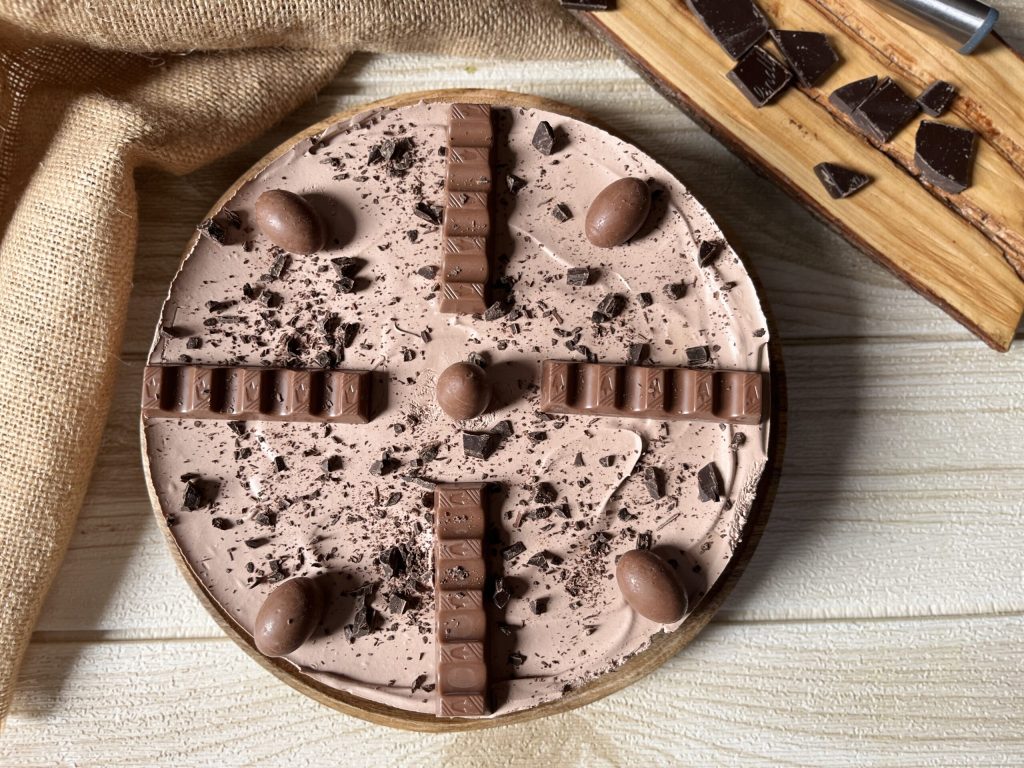 Tarta Fría de Chocolate con Huevos de Pascua. Receta deliciosa sin cocción.