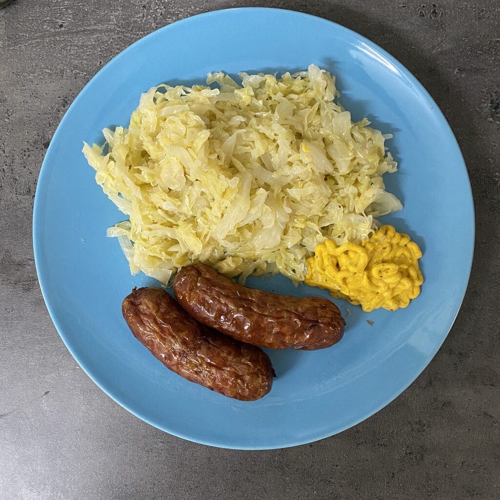 A decir verdad, este plato hecho en casa me recuerda mucho al viaje que hice a Alemania hace años. De hecho, estaba en Fráncfort del Meno durante las vacaciones de Navidad y recuerdo que yo, junto con mis amigos y mi compañera, cenamos en un local típico en el centro de la ciudad donde había un ambiente fantástico. Además, pedimos varios platos y uno en particular lo recuerdo bien, un mix de salchichas alemanas con guarnición de chucrut que intenté reproducir en esta receta que te voy a proponer. De esta manera, mis salchichas con col guisada son una reinterpretación principalmente porque el chucrut, por su concepción, debe fermentar, a diferencia de lo que hice yo. De todos modos, creo que el resultado no estuvo nada mal!