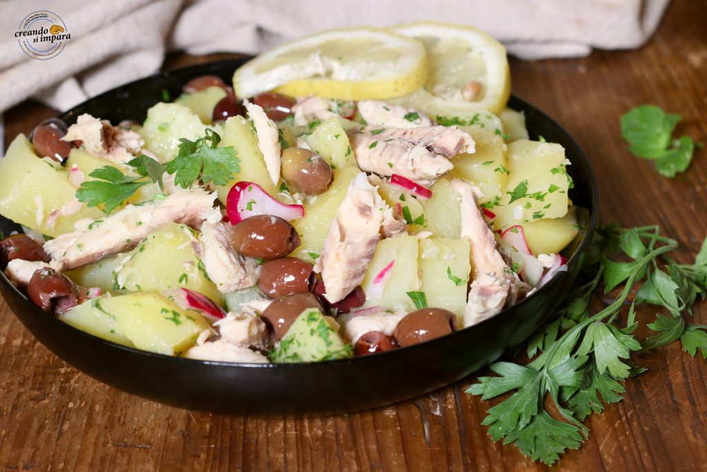 Una ensalada fácil y deliciosa, fácil de preparar, buenísima tanto fría como templada, nutritiva y sabrosa. Se puede servir como plato único, tal vez con algunas verduras a la parrilla, o como entrante simple, está aromatizada con cáscara de limón. Solo nos queda ponernos a trabajar y preparar juntos la ensalada de patatas con caballa y cebolla.