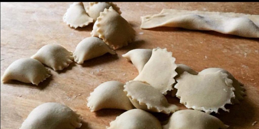 La tradición quiere que durante la víspera de Navidad la familia se reúna para preparar juntos los anolini (anvein), primer plato de apertura del almuerzo navideño. Recuerdo de pequeña en casa de la abuela, estos días importantes e inolvidables, se empezaba preparando el stracotto el día antes, que inundaba la casa con un aroma inigualable. Luego se procedía con la preparación del relleno, y la lámina fina, con la que se creaba este pequeño cofre que contenía el relleno de carne. No es solo un plato, es hogar, recuerdos, tradición….
