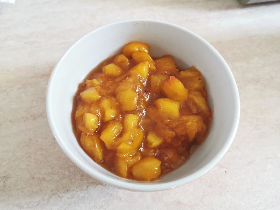 Lava los melocotones, divídelos por la mitad, sin pelarlos. Extrae el hueso y ahuécalos un poco usando una cucharilla para frutas. La pulpa del melocotón ponla en un platito y aplástala con un tenedor.