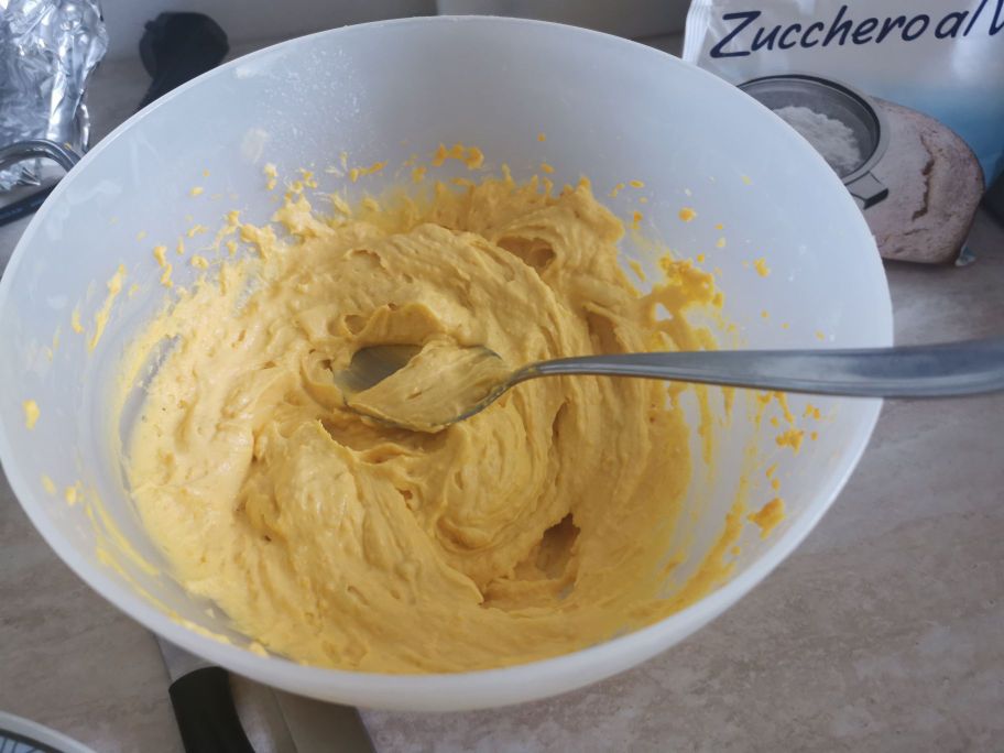 En un bol, trabajamos con una batidora la ricotta con el azúcar glas (si te interesa comprarlo haz clic aquí) dos tercios de la calabaza previamente cocida. Ponemos en la nevera durante unos 30 minutos