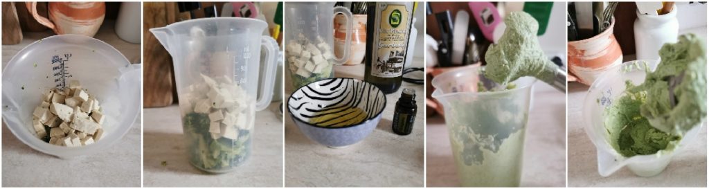 Para realizar este paté se necesitan pocos ingredientes simples: tofu, brócoli, hierbas aromáticas (como albahaca, perejil y tomillo), aceite de oliva virgen extra, ajo y especias al gusto, y una gota de aceite esencial de orégano, para hacerlo aún más sabroso y delicioso. El procedimiento es realmente rápido: basta con cocer el brócoli al vapor o en agua hirviendo, triturarlos junto con el tofu y los demás ingredientes hasta obtener una crema homogénea.
