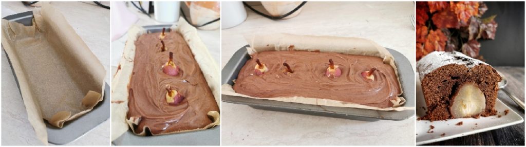 PLUMCAKE CON PERAS AL VINO Y CHOCOLATE, una receta dulce sencilla y deliciosa. La combinación de pera y chocolate es un clásico intemporal, (Bizcocho de chocolate con peras y ron) que ofrece un sabor rico y envolvente. Además, es un dulce que se presta a diferentes versiones, por ejemplo, puedes añadir al batido gotas de chocolate, frutos secos o especias. En esta receta he usado cacao amargo, y peras cocidas en vino especiado, una delicia, que se hunden en la masa super suave, y realmente deliciosa. Al cortarlo, el dulce muestra rebanadas particularmente llamativas y, por lo tanto, se presta perfectamente no solo como desayuno, sino también como postre después de las comidas, quizás acompañado de un poco de nata sin azúcar o una bola de helado de vainilla. He usado peras Abate, pero también puedes usar las Williams, lo importante es que no estén particularmente maduras y no demasiado grandes, deben sobresalir aproximadamente un tercio de la superficie de la masa del plumcake. ¡Pruébalo!